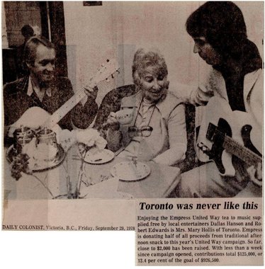 Toronto was never like this News Author: Daily ColonistPublished by: Daily Colonist United Way fundraising at the Empress Hotel in 1978 Posted: Jan 16, 2016 Originally Published: Sep 29, 1978 In this Article Artist(s) Dallas Hansen Trio, Dallas Hansen, Robert Edwards