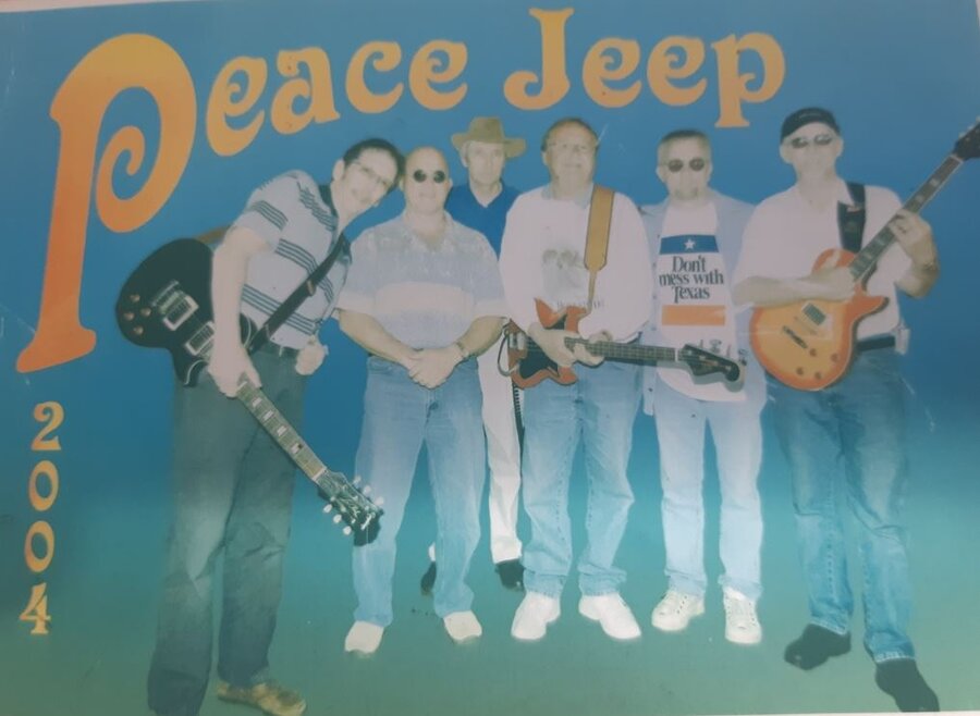 The bands name was adopted during a trip to Saltspring Island. Drummer, Russ Godfrey was reading the newspaper on the ferry and saw "Peace Be With You" and "Jeepers Creepers" on the horse racing section. The name was a combination of both the horses. Photo taken in 2004 from a band reunion.