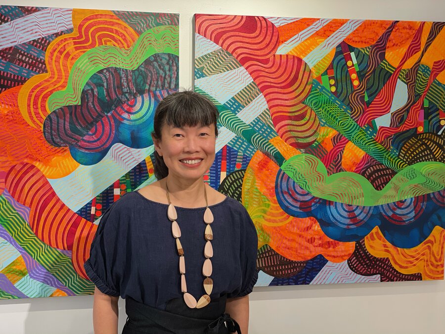 International award-winning Canadian painter, Chin Yuen, was born in Malaysia. She studied in Singapore and England before moving to Canada for farther education. She holds a Bachelor of Fine Arts with Honors from Vancouver’s Emily Carr University of Art and Design and a Master of Arts from the University of Victoria, Canada. After graduation, she moved to Japan and Italy, where she taught English and Fine Arts for several years before returning home to Canada. Yuen continues to travel extensively for work and pleasure. She sees her diverse cultural exposures as an artistic asset and finds inspiration everywhere, from pop-culture to decaying wood. For over 20 years, she has exhibited internationally. Her dynamic abstract paintings are on the covers of international textbooks and the walls of residential homes, hotels, health care centres, and corporate buildings.