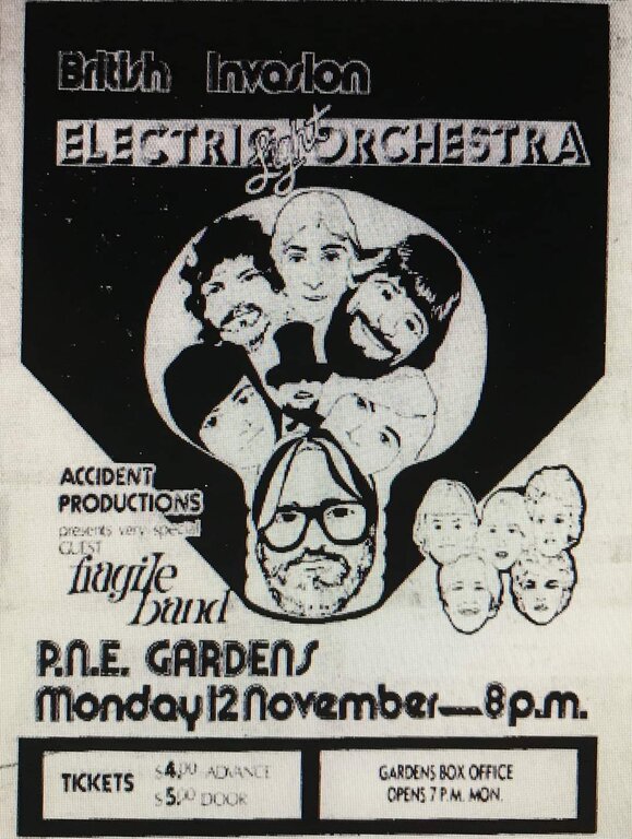 Opened for Electric Light Orchestra November 12, 1973 at the Garden Auditorium in Vancouver