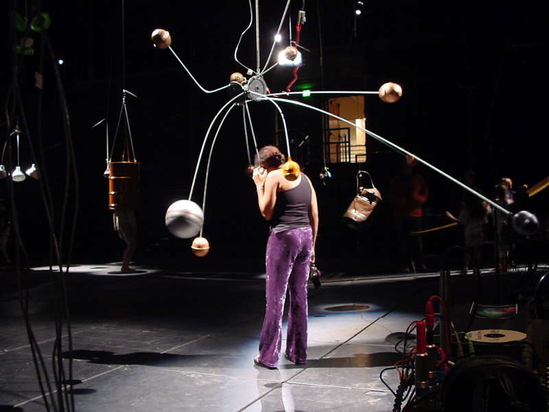 Rainforest IV is a strongly visual sound sculpture work, usually performed live over a period of several hours, providing an improvisational environment for participants to co-create in sound what David Tudor described as “an electronic ecology” which ebbs and flows and changes slowly over time as the group finds its way. There is no planned form for a multi-hour performance: visitors are free to come and go, and walk around the room of sound sculptures, as many as 40 suspended in space and each resonating with unique sounds. Sensing sonic vibrations through gently touching the objects is also encouraged. The piece is welcoming to all ages and abilities!
