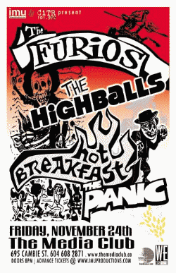 . Friday, November 24th IMU & CiTR present The Furios, The Highballs, Hot Breakfast & The Panic @ The MEDIA CLUB, 695 Cambie . 8pm / $10