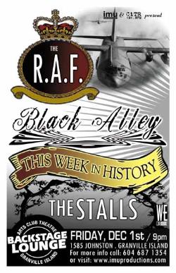 . Friday, December 1st IMU & CiTR present The R.A.F., Black Alley, This Week In History & The Stalls @ The BACKSTAGE LOUNGE on Granville Island (1585 Johnston St.) . 9pm / $10