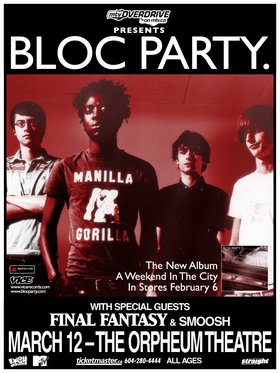 Bloc Party, Final Fantasy, Smoosh @ The Orpheum Mar 12 2007 - Jan 10th @ The Orpheum