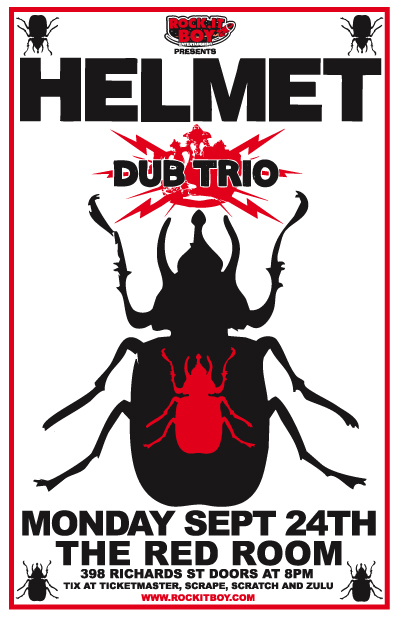 Rock.It Boy Entertainment is proud to present Warcon Records artist HELMET with special guest DUB TRIO in concert on Monday, September 24th at The Red Room, 398 Richards Street, in Vancouver (phone 604-687-5007). Advance tickets are available for $22.50 plus service charges from Zulu, Scratch and Scrape Records and from all Ticketmaster outlets (online at www.ticketmaster.ca or Charge-by-Phone at 604-280-4444). Doors open at 8:00pm.