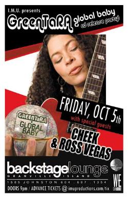 . Friday, October 5th I.M.U. presents GreenTaRA CD Release Party w/ special guests CHEEK & ROSS VEGAS @ The Backstage Lounge on Granville Island (1585 Johnston St.) . 9pm - Purchase advance tickets @ http://www.imuproductions.com/tix