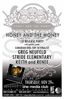 HONEY & THE MONEY CD Release Party w/: GREG NEUFELD, Honey and the Money, Stride Elementary, KEITH and RENEE @ The Media Club Nov 29 2007 - Feb 6th @ The Media Club