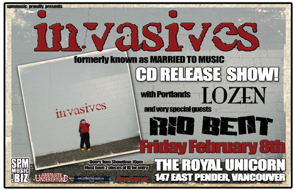 INVASIVES CD RELEASE SHOW!!!: Invasives, Lozen, Rio Bent @ Royal Unicorn Cabaret Feb 8 2008 - Feb 23rd @ Royal Unicorn Cabaret