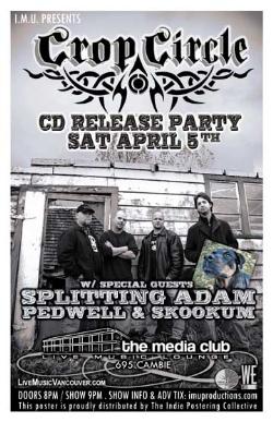 . Saturday, April 5th I.M.U. presents CROP CIRCLE CD Release Party w/ special guests SPLITTING ADAM, PEDWELL & SKOOKUM @ The Media Club, 695 Cambie . Doors 8pm, $10 Advance - Purchase advance tickets online @ http://www.imuproductions.com
