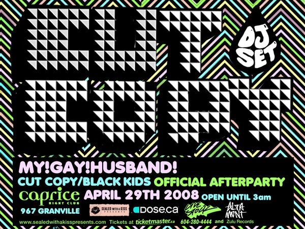 Official afterparty for Cut Copy / Black Kids at Richards: Cut Copy, My! Gay! Husband! @ The Caprice Dec 31 1969 - Feb 3rd @ The Caprice