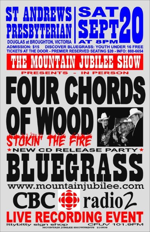 Victoria's Fabulous Bluegrass Band: Four Chords of Wood @ St. Andrews Presbyterian Church Sep 20 2008 - Feb 9th @ St. Andrews Presbyterian Church