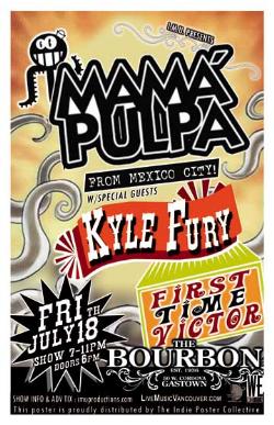 . Friday, July 18th I.M.U. presents MAMA PULPA from Mexico, KYLE FURY & FIRST TIME VICTOR @ The Bourbon, 50 West Cordova . Early show 8-11pm sharp - Purchase advance tickets online @ www.imuproductions.com