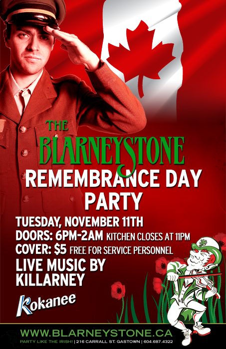 The Blarney Stone Remembrance Day Party @ Blarney Stone Nov 11 2008 - Dec 25th @ Blarney Stone
