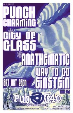 . Saturday, Oct 25th I.M.U. presents PUNCH CHARMING, CITY OF GLASS, ANATHEMATIC & WAY TO GO EINSTEIN @ PUB 340, 340 Cambie Street / Purchase advance tickets online @ www.imuproductions.com