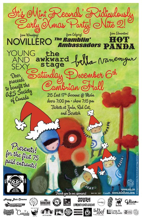 Presents for the first 75 paid entrants! Present contributors include: Glico Canada Corporation (home of Pocky!), Six Cent Press, Hockey Dad Records, Black Hen Records, Bongo Beat Records, Northern Electric Records, Copperspine Records, Bonerattle Music, Not Just Another Music Store, Black Dog Video, Latida Records, Zulu Records, Indie Music Video Festival, Nardwuar Records, Fuzzy Logic Records, Deranged Records, Happy Bats Video, Red Cat Records, Scratch Records, Out Of This Spark Records, Long and McQuade, The Cascade Room, The Reef, and more to come!