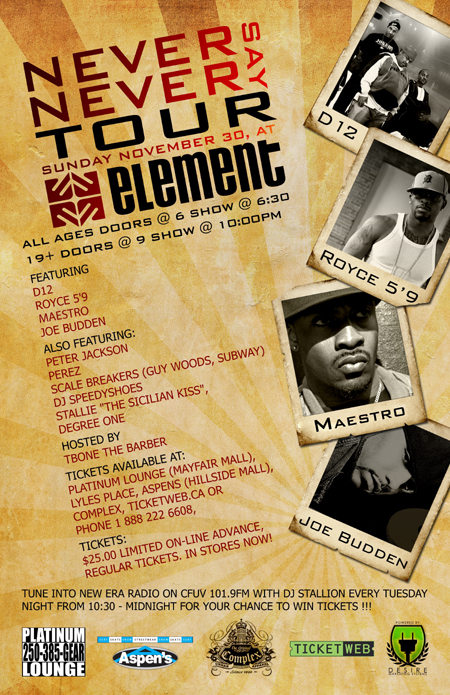 Also known as The Dirty Dozen, D-Twizzy, D-Tizzle and Detroit-Twelve is an American hip hop group from Detroit, Michigan. D12 has had chart-topping albums in the United States, United Kingdom, and Australia.D12 was formed in 1990, but only achieved mainstream success when one of its members, Eminem, rose to international fame and notoriety.