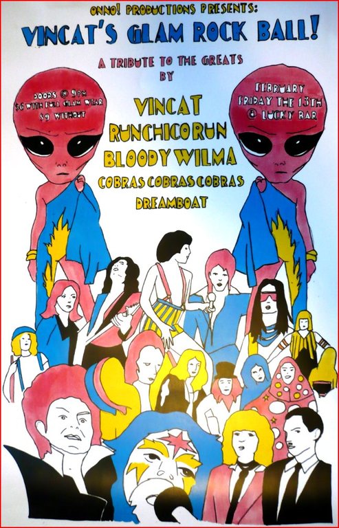 Vincat's Glam Rock Ball: A tribute to the greats!: vincat, Run Chico Run, Bloody Wilma, Cobras Cobras Cobras, Dreamboat @ Lucky Bar Feb 13 2009 - Feb 8th @ Lucky Bar