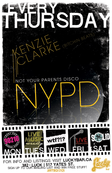 NYPD - NOT YOUR PARENTS DISCO with DJ: Kenzie Clarke @ Lucky Bar Mar 5 2009 - Dec 2nd @ Lucky Bar