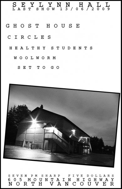 LASTY SEYLYNN HALL SHOW: Ghost House, Circles, Healthy Students, Woolworm, SET TO GO @ Seylynn Hall Jun 13 2009 - Jan 13th @ Seylynn Hall