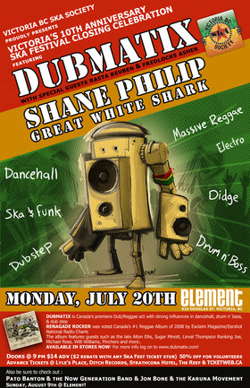 So if you thought that there would be a break of ska and reggae after Victoria's 10th Anniversary Ska Festival, you thought WRONG;) DUBMATIX (formerly Dubmatix Soundsystem) is coming with new flavours of up beat dub, reggae, dancehall and dub step for all to enjoy. Special guest performers will include Rasta Reuben and Ian Avery of Dubtet.