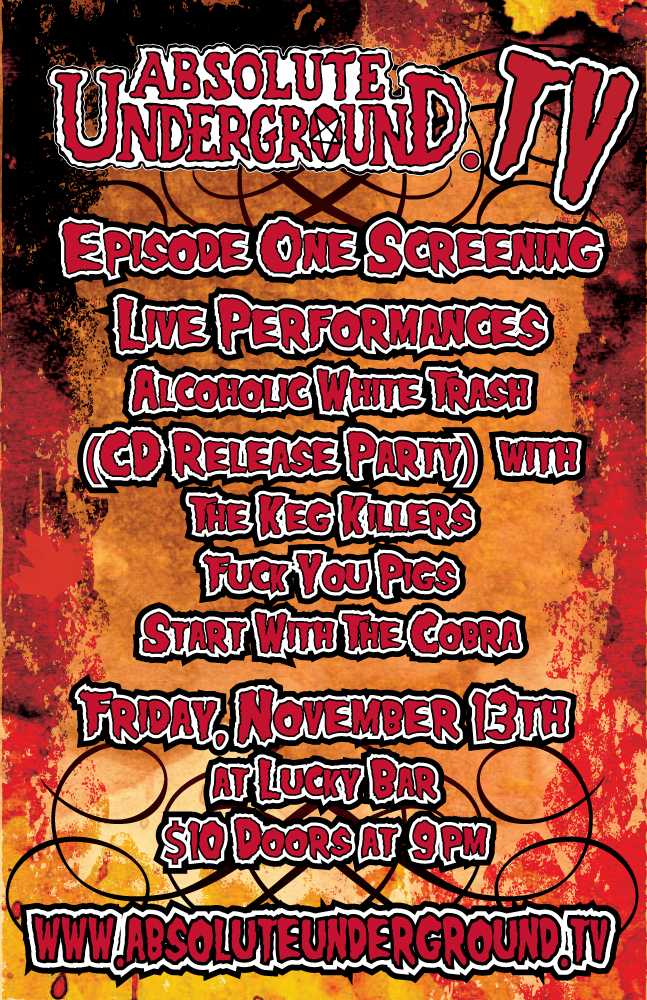 FRIDAY THE 13TH!!! ABSOLUTE UNDERGROUND T.V. LAUNCH PARTY!! ONE NIGHT ONLY: Alcoholic White Trash, The Keg Killers, START WITH THE COBRA, FUCK YOU PIGS