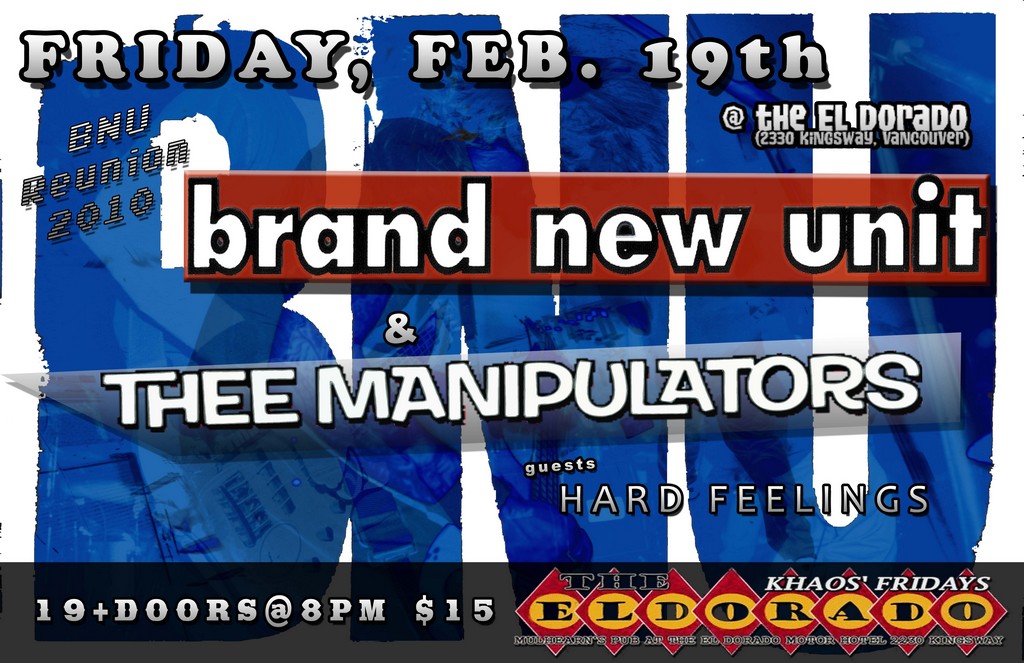 The return of BNU!!!: Brand New Unit, Thee Manipulators, Hard Feelings @ The El Dorado Feb 19 2010 - Jan 14th @ The El Dorado