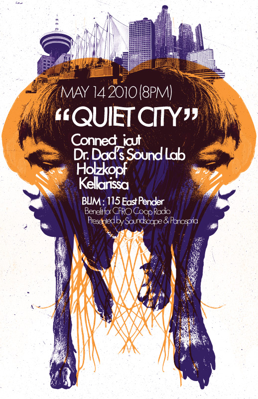 Quiet City is a new series of deep-listening concerts in Vancouver, focused on live performances of experimental, electronic and improvised music in a comfortable and intimate setting. Proceeds from these events will be donated to CFRO Co-op Radio.