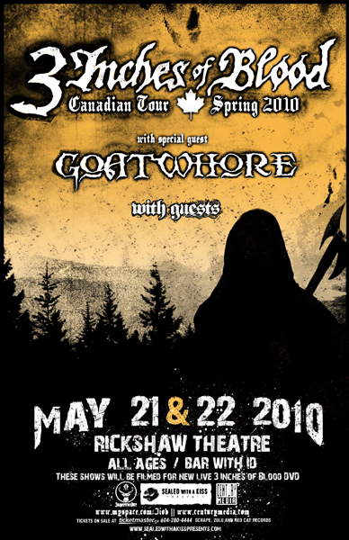 2ND NIGHT ADDED!! DIFFERENT SET EACH NIGHT!: 3 Inches Of Blood, Goatwhore, The Golers @ Rickshaw Theatre May 21 2010 - Feb 5th @ Rickshaw Theatre