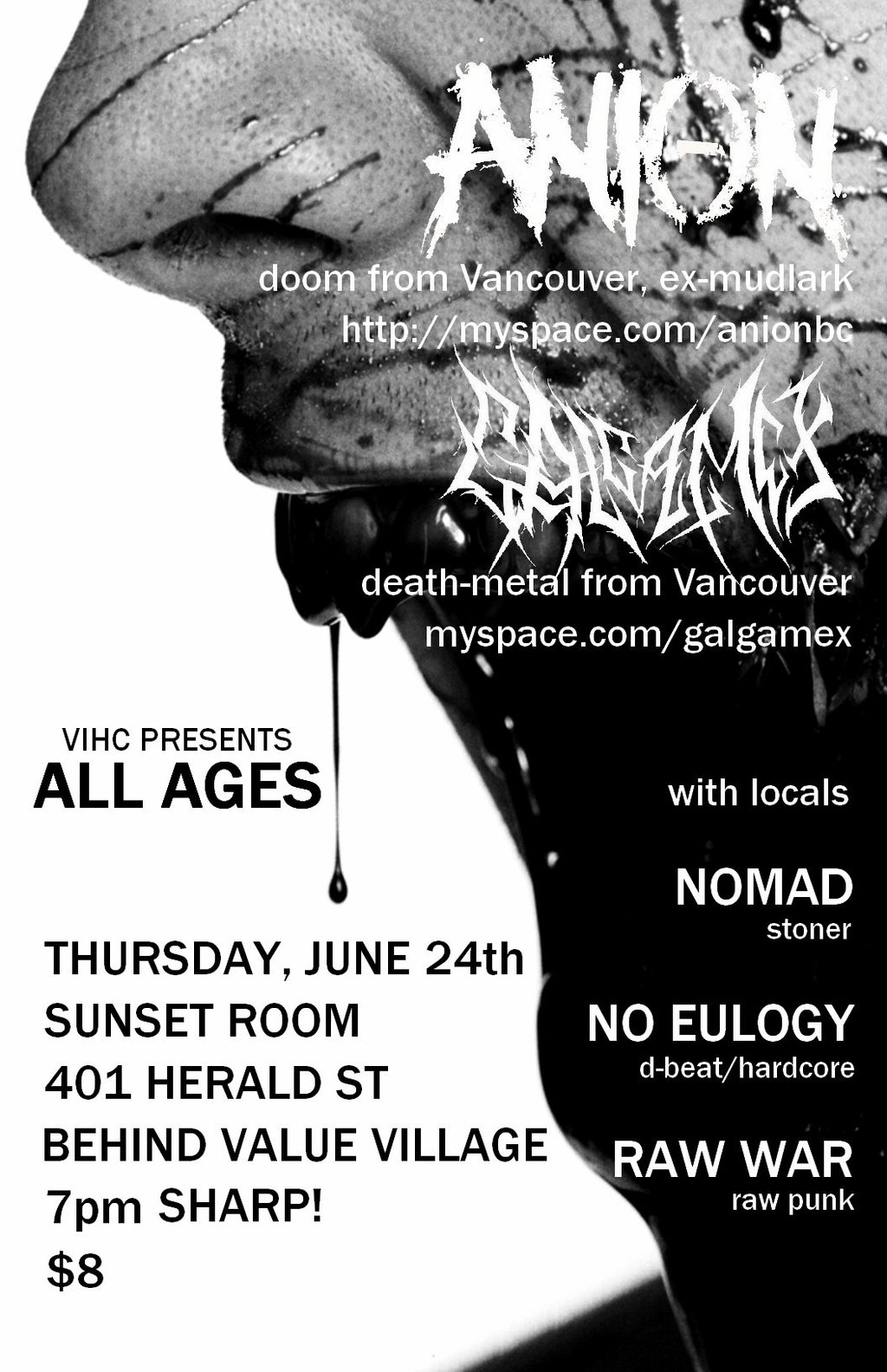 VIHC PRESENTS: ALL AGES DOOM/DEATH/D-BEAT/PUNK: Anion, Galgamex, No Eulogy, Raw ...