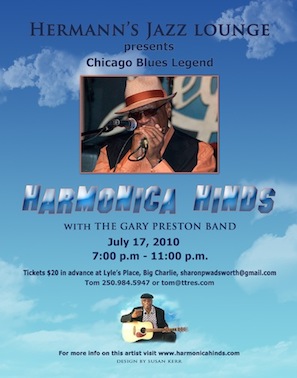 Harmonica Hinds, a regular on the Chicago Blues Circuit for over 30 years, has worked with Willie Dixon, Koko Taylor, Pinetop Perkins, Junior Wells, Sammy Lowhorn, Eddie Taylor Jr., John Primer, and a host of others.