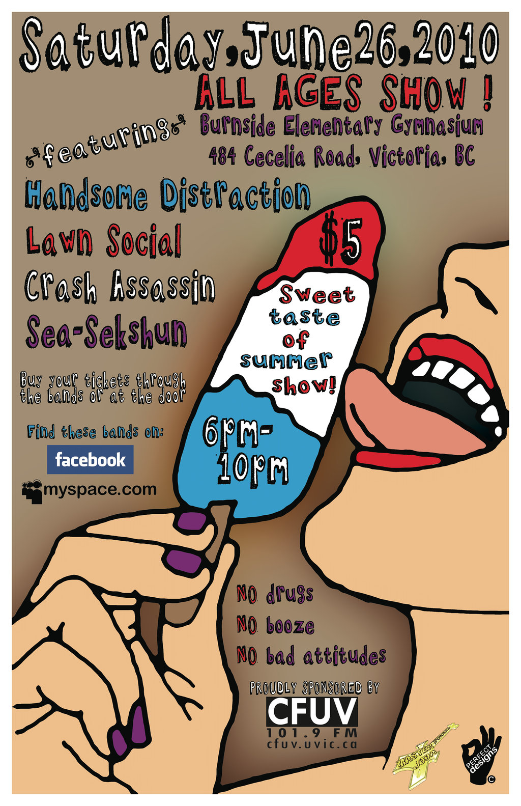 Come celebrate the end of the school year and the sweet taste of summer holidays with this ALL AGES show featuring local rock band Handsome Distraction, Lawn Social, Crash Assassin, and Sea-Sekshun.