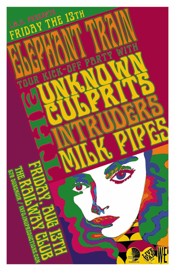 . Friday, August 13th IMU presents ELEPHANT TRAIN Tour Kick-Off Party w/ The UNKNOWN CULPRITS, The INTRUDERS & THE MILK PIPES @ The Railway Club, 579 Dunsmuir . Doors 9pm / Cover $12 @ the door