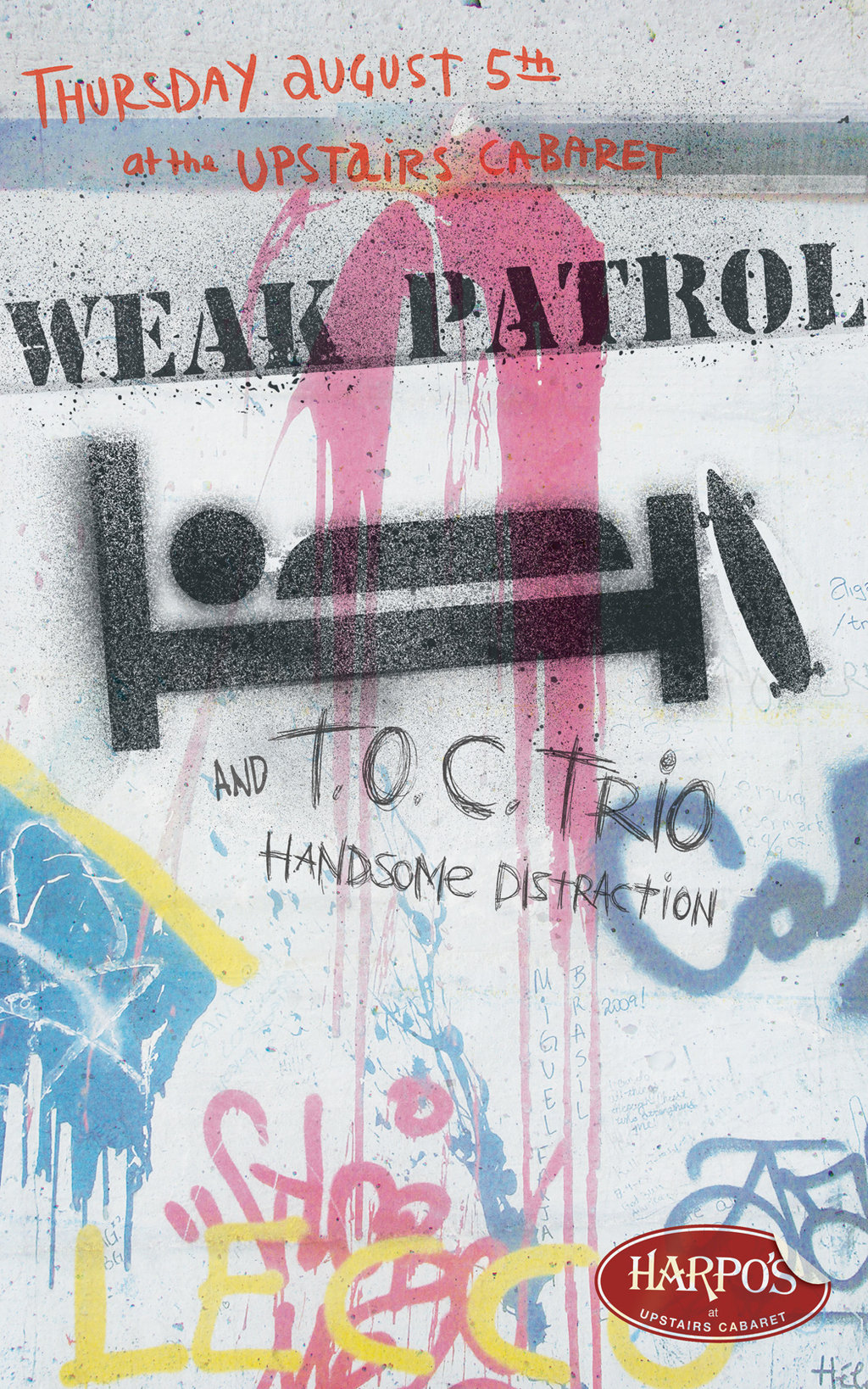 Bring your dancing shoes and your pit-stick, this is not a seated event!!: Weak Patrol, Handsome Distraction, The T.O.C. Trio @ The Upstairs Cabaret Aug 5 2010 - Feb 8th @ The Upstairs Cabaret
