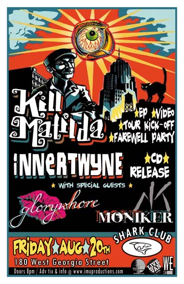. Friday, August 20th IMU presents KILL MATILDA CD & Video Release Tour Kick-Off Farewell Party & INNERTWYNE CD Release w/ GLORYWHORE & MONIKER @ The Shark Club, 180 West Georgia Street . Doors 8pm / Cover $10 advance . $12 @ the door