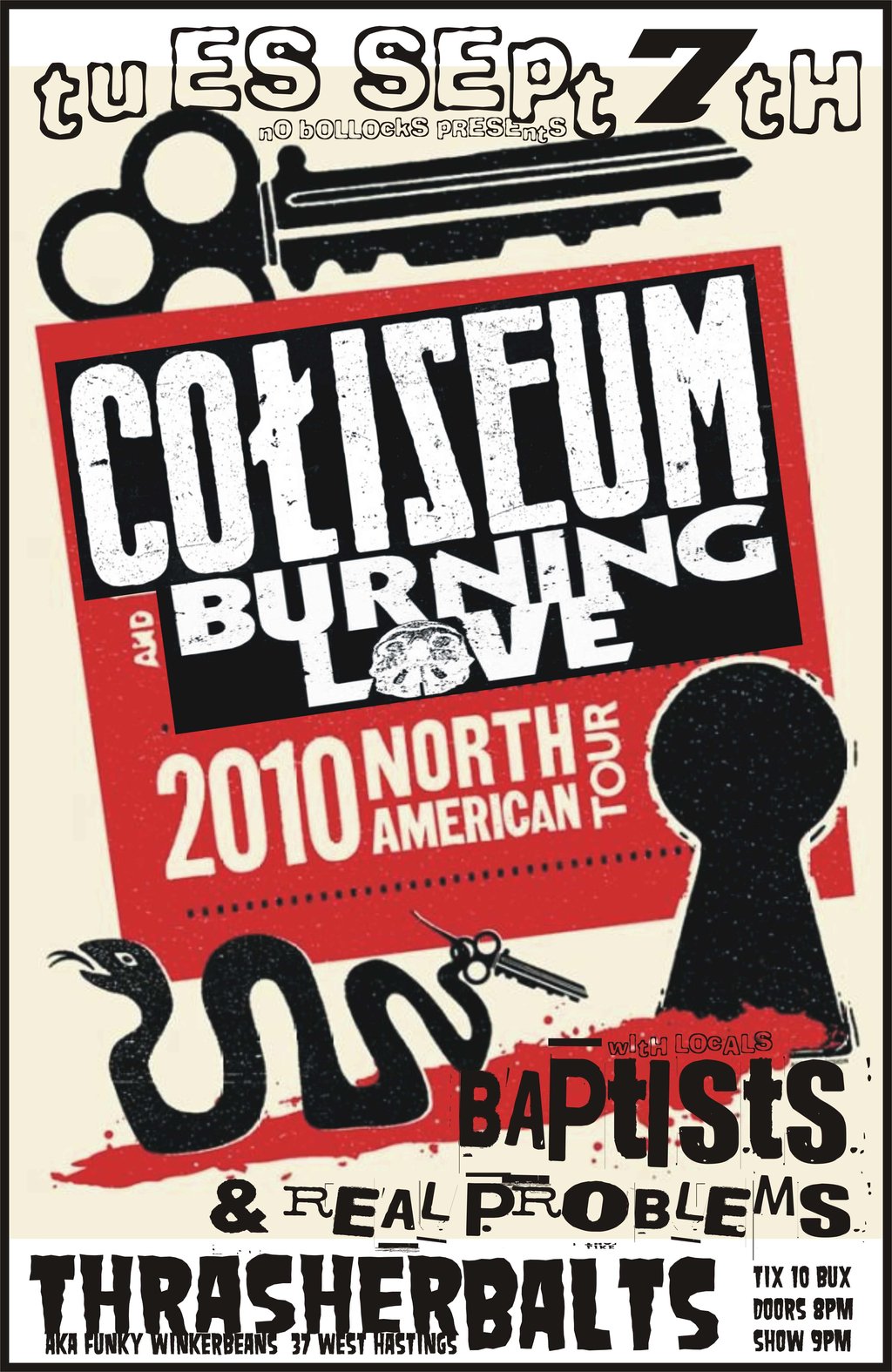 COLISEUM/BURNING LOVE TOUR 2010: Coliseum, BURNING LOVE, Baptists , Real Problems @ Funky Winker Beans Sep 7 2010 - Feb 26th @ Funky Winker Beans