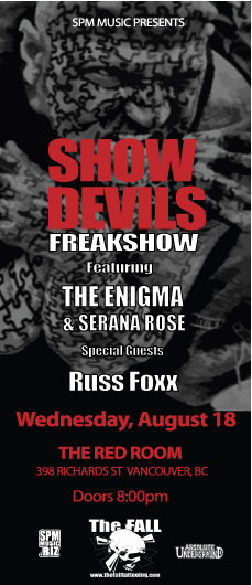 SHOW DEVILS FREAKSHOW FEATURING THE ENIGMA WITH SERANA ROSE & GUEST RUSS FOXX: SHOW DEVILS FREAKSHOW, THE ENIGMA, SERANA ROSE, Russ Foxx, DJ ANTI HERO @ The Red Room Aug 18 2010 - Feb 1st @ The Red Room