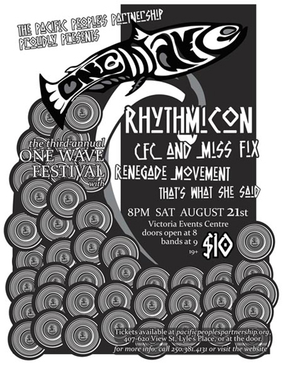 Pacific Peoples' Partnership presents the 3rd annual ONE WAVE Festival which crashes into Victoria on AUGUST 21st! We are seriously stoked to bring you a night PACKED with funk rock, hip hop beats, dubstep and drum 'n' bass from your favourite local groove specialists...