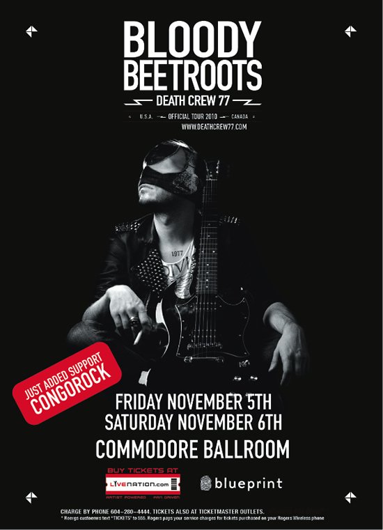 The Bloody Beetroots Death Crew 77, Congorock @ The Commodore Ballroom Nov 5 2010 - Dec 6th @ The Commodore Ballroom