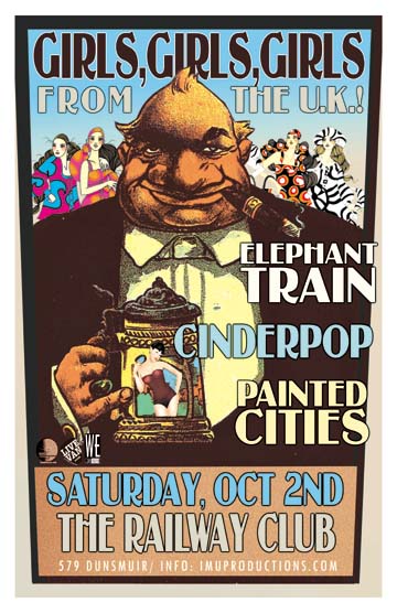 ELEPHANT TRAIN has been around for nearly two years, gaining a respectable following by playing shows throughout Vancouver. Their sound touches on a wide variety of genres and styles, combining funky licks that make the girls cry with a solid, lickity-split havoc that brings out the boogie in people. Quickly gathering speed with a new album of studio recordings, Elephant Train delivers a strong, enthusiastic live show full of funky original rock. http://www.myspace.com/elephanttrain