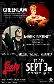 Greenlaw, Mark Instinct, nikTex, DJ CAP, Merlin Fx @ Lucky Bar Sep 3 2010 - Jan 2nd @ Lucky Bar