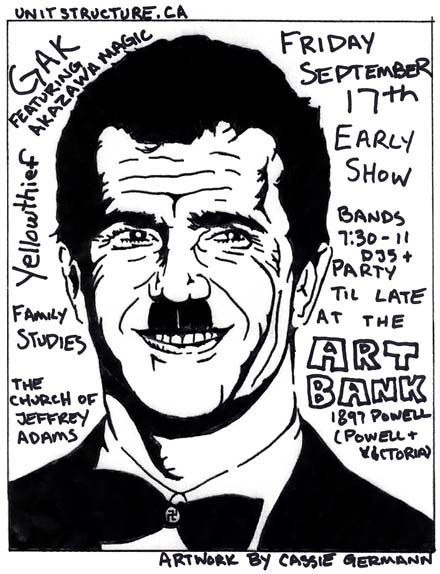Unit Structure Sound Recordings present (early show):: The Church of Jeffrey Adams, Family Studies, yellowthief, GAK  + Akazawa Magic, DJ Bros /w Visuals by Ben Jacques @ ARTBANK Sep 17 2010 - Feb 13th @ ARTBANK