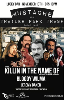 Moustache and Trailer Park Trash -Theme Party-: Killin In The Name Of , Bloody Wilma, Jeremy Baker @ Lucky Bar Nov 10 2010 - Dec 26th @ Lucky Bar