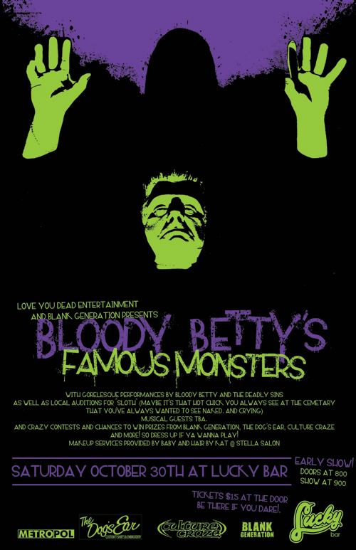 And as always crazy contests with your chance to win wicked prizes from Blank Generation, Culture Craze and The Dog's Ear. So DRESS UP for your chance to play.