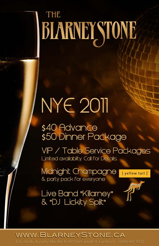 Grab yourself a complimentary champagne at midnight & celebrate Auld Lang Syne with live music from Irish Cover band "Killarney" & top chart hits from DJ "Lickity Split".