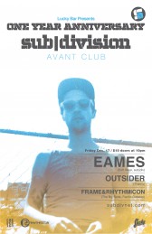 sub|division one year anniversary!!: Eames , Outsider, Frame & Rhythmicon @ Lucky Bar Dec 17 2010 - Feb 8th @ Lucky Bar