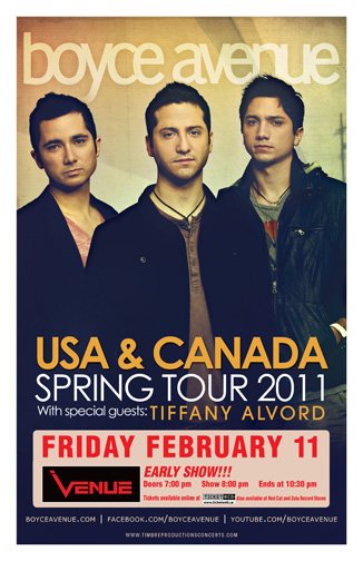 BOYCE AVENUE, Tiffany Alvord @ Venue Feb 11 2011 - Nov 29th @ Venue