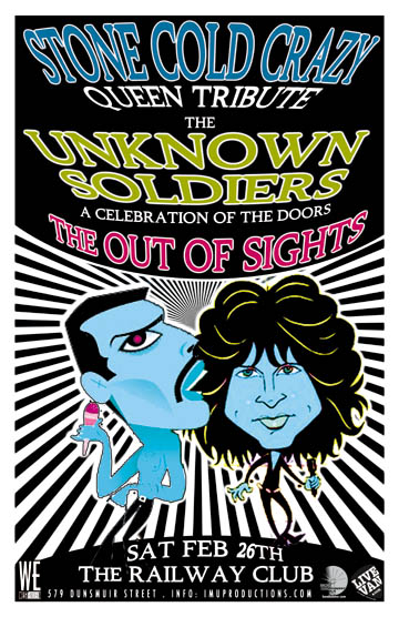 . Saturday, February 26th IMU presents STONE COLD CRAZY Queen Tribute w/ The UNKNOWN SOLDIERS ~ A Celebration Of The Doors & The OUT OF SIGHTS @ The Railway Club, 579 Dunsmuir