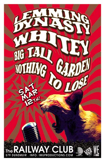 . Saturday, March 12th IMU presents LEMMING DYNASTY, WHITEY, BIG TALL GARDEN & NOTHING TO LOSE @ The Railway Club, 579 Dunsmuir . 9pm / $10
