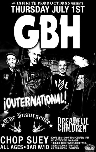 GBH, Outernational!, Insurgence, DREADFUL CHILDREN @ Chop Suey Jul 1 2010 - Feb 4th @ Chop Suey