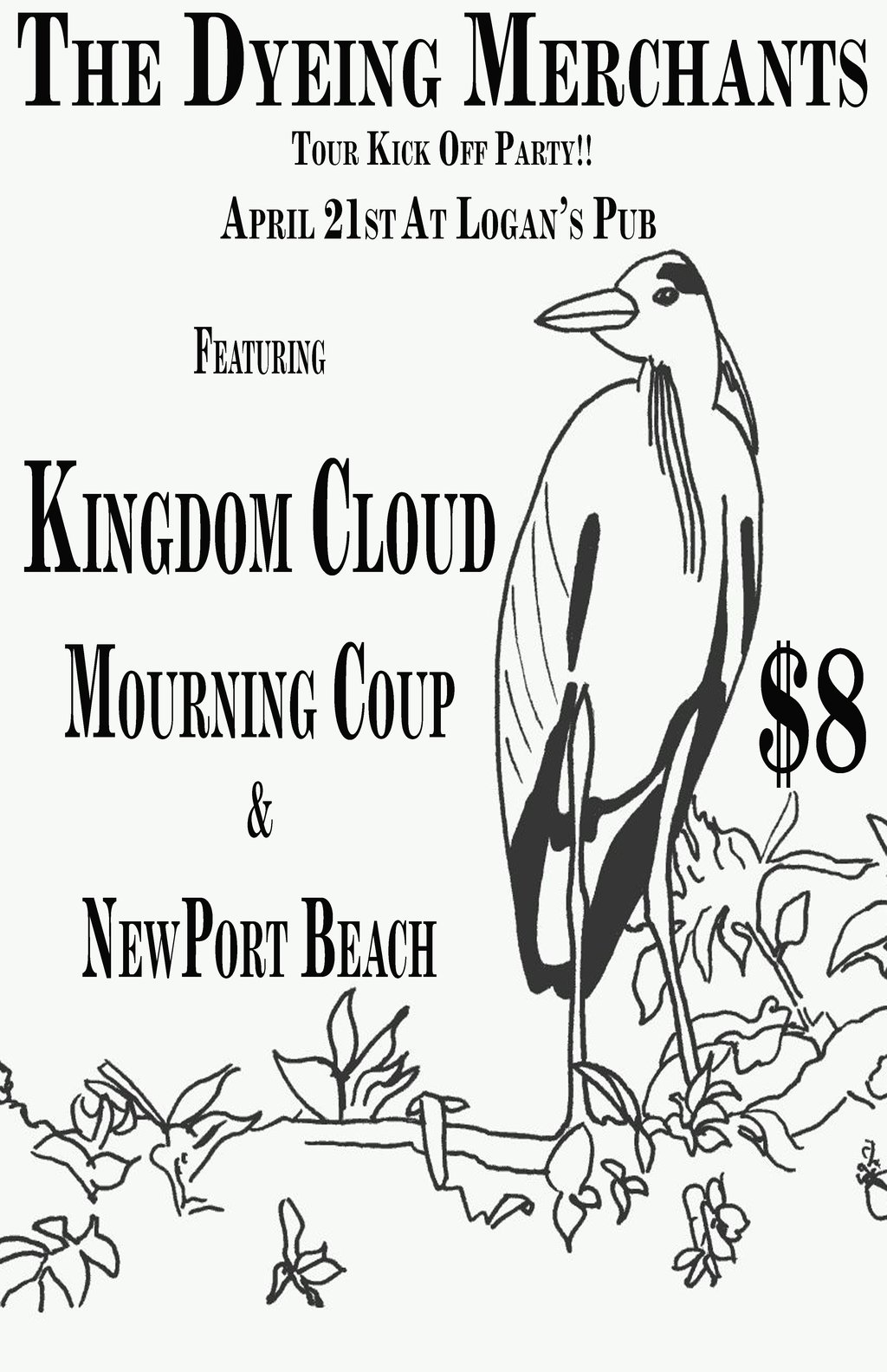 The Dyeing Merchants "Western Canada Tour" Kick Off Party: The Dyeing Merchants, Kingdom Cloud, Newport Beach, Mourning Coup @ Logan's Pub Apr 21 2011 - Jan 14th @ Logan's Pub